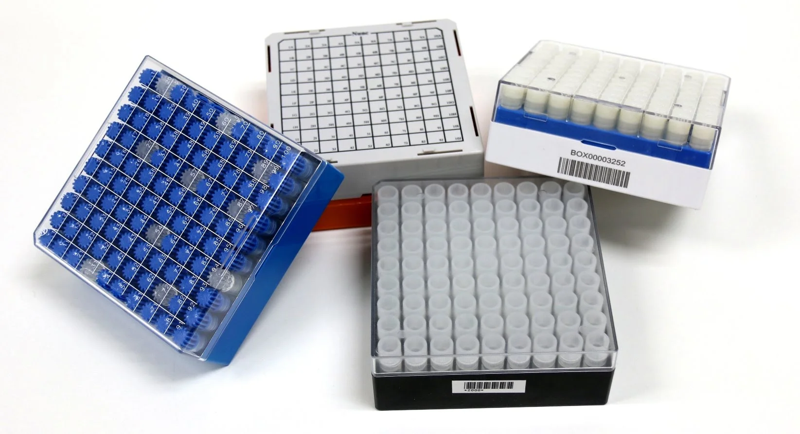 Sample Cryoboxes stored in the freezer racks | Image Credit